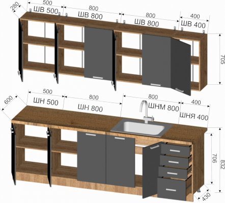 Шкаф верхний: 800х705х300 мм
