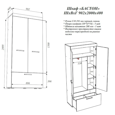 Шкаф Бастон (Эра) – товар доступен к покупке в интернет-магазине bryanskiy-dommebeli.ru. Цена – 12 452 руб. без учета доставки. Стоимость дополнительных услуг и сроки получения мебели уточняйте у менеджера. Возможен безналичный расчет, оплата по карте на сайте.
