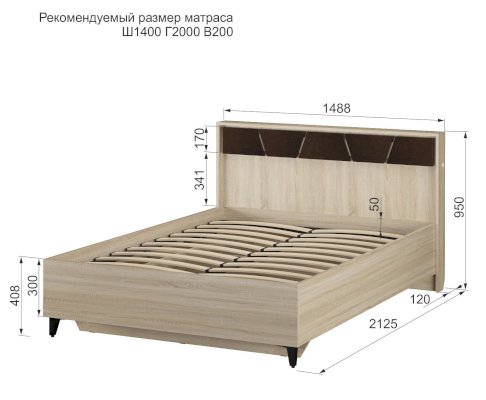 Рекомендуемая высота матраса: 18-24 см