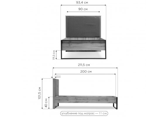 Спальное место: 90х200 см